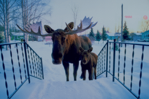 Лось появился на пороге дома семьи, и муж потерял дар речи, когда узнал причину